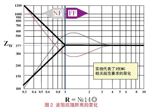 在靠近源的區(qū)域,電場和磁場的關(guān)系非常復(fù)雜;盡管既有電場又有磁場,但該區(qū)域要么基本體現(xiàn)為電場要么基本體現(xiàn)為磁場。在遠(yuǎn)離源的區(qū)域,電場和磁場的關(guān)系變得穩(wěn)定了,即E/H=120π。電場和磁場的這種關(guān)系如圖2 所示。EMC從業(yè)者通常采用簡化和近似的距離,即R=λ/2π,并認(rèn)為場在該處出現(xiàn)從近場到遠(yuǎn)場轉(zhuǎn)變。這個公式的前提假設(shè)是源結(jié)構(gòu)的尺寸小于半個波長。天線的設(shè)計者們所尋求的更加精確的表達(dá)式可能會成為上述觀點的一個例外情況。[page]