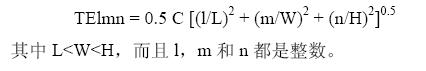 對于一個簡單的矩形殼體(尺寸為L,W,H,單位是米),各諧振頻率可以通過下面的表達(dá)式計算得到