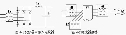 (1)線路濾波器:主要由電感線圈構(gòu)成(如圖4-2中F11所示)。它主要通過(guò)增大線路在高頻下的阻抗來(lái)削弱頻率較高的諧波電流。
