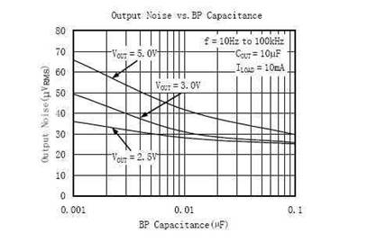 為降低基準(zhǔn)噪聲,用于連接基準(zhǔn)旁路電容。增大旁路電容能夠使基準(zhǔn)噪聲成為產(chǎn)生LDO輸出噪聲的次要因素,有利于減小輸出噪聲。建議使用陶瓷電容的典型值為470pF到0.01µF。也可使用此范圍以外的電容,但會(huì)對(duì)輸入電源上電時(shí)LDO輸出電壓上升的速度產(chǎn)生影響,旁路電容值越大,輸出電壓上升速率越慢。在使用時(shí)這點(diǎn)要注意。