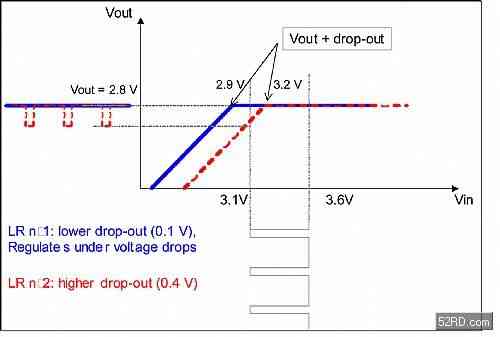 結(jié)論2:對(duì)壓降非常小的線性穩(wěn)壓器要求更加嚴(yán)格,因?yàn)殡姵仉妷弘S著時(shí)間的推移會(huì)降低,比如降至2.9V。在整個(gè)電池電壓范圍內(nèi)保持穩(wěn)定電壓很重要,由此得到的結(jié)論是壓降越低,電池有效供電時(shí)間就越長(zhǎng)。