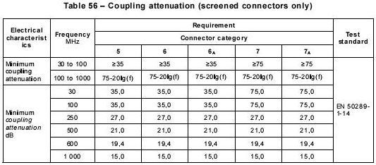 按IEC61196-1測試同軸電纜的方法,測試帶屏蔽的平衡電纜,短路8根芯線后用50Ω信號源激勵。被測試線長1米,測試頻率30MHz,頻率越高,線長越短導(dǎo)體表面轉(zhuǎn)移阻抗。主要用于評估連接硬件的屏蔽效率,其實測值不超過以下計算值。
