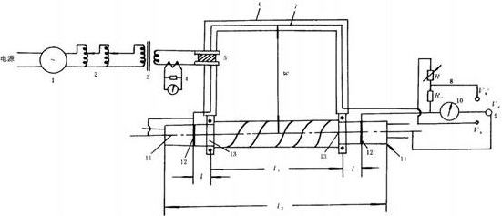 按下圖裝置,測試電纜金屬護套及鎧裝層的理想屏蔽系數(shù)γ0s=VC/VS(線芯上的感應(yīng)電壓mV;電纜式樣金屬套上的縱向干擾電壓mV)。