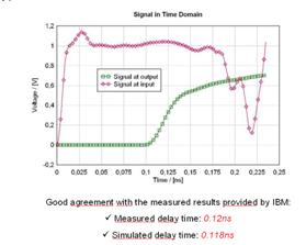 除了CST印制板工作室,CST微波工作室也可以進行印制板的信號完整性分析。CST微波工作室是通用的高頻無源仿真軟件,集時域和頻域算法為一體包含七種全波算法:時域有限積分、頻域有限積分、頻域有限元、模式降階法、矩量法、多層快速多極子和本征模法。圖5給出了CST仿真IBM復(fù)雜PCB并進行信號完整性分析的考題,仿真得到的電壓延時與實測只差0.002ns。[page]