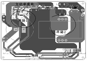 對于元器件的放置,由于開關電源的輻射干擾(E)與電流通路中電流(I)的大小,通路的環(huán)路面積(A),以及電流頻率(f)的平方等三者的乘積成正比,即E=I·A·f2。運用這一關系的前提是通路尺寸遠小于頻率的波長(此電路符合條件)。