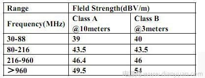 EMI測(cè)試是在特定的電波暗室中進(jìn)行的,測(cè)量由產(chǎn)品中輻射出來(lái)的電磁波強(qiáng)度,與FCC等規(guī)范相比較,不得超過(guò)規(guī)定的最大能量。FCC規(guī)范中將產(chǎn)品按用途分為CLASS A 、CLASS B 兩大類(lèi),A 類(lèi)為用于商務(wù)或工業(yè)用途的產(chǎn)品,B 類(lèi)為用于家庭用途的產(chǎn)品, FCC 對(duì) B 類(lèi)產(chǎn)品法規(guī)要求更嚴(yán)格。下表顯示的是FCC 規(guī)范的CLASS A和CLASS B標(biāo)準(zhǔn):