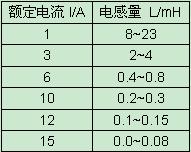 表1 電感量范圍與額定電流的關(guān)系