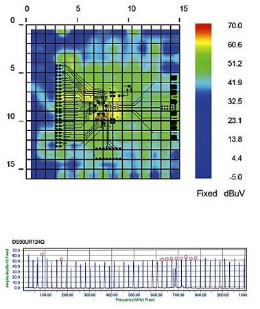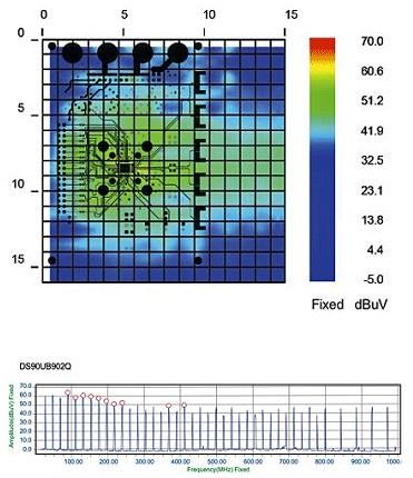 在任何新PCB的開發(fā)過程中,設(shè)計(jì)工程師都必須找出設(shè)計(jì)之外的輻射體或射頻泄漏,并對其進(jìn)行描述和處理以通過一致性測試。可能的輻射體包括高速、大功率器件以及具有高密度或高復(fù)雜度的器件。掃描系統(tǒng)以疊加在Gerber文件上的形式顯示空間輻射特性,因此測試人員可以準(zhǔn)確地找出所有輻射問題的來源。設(shè)計(jì)工程師可以在采取了相應(yīng)的解決措施之后,對器件進(jìn)行重新測試并立即量化出校正設(shè)計(jì)后的效果。