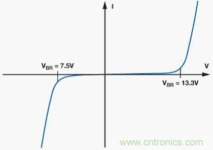 重要的是要確保TVS的擊穿電壓在受保護引腳的正常工作范圍之外。CDSOT23-SM712的獨有特性是具有+13.3 V和–7.5 V的非對稱擊穿電壓,與+12 V至–7 V的收發(fā)器共模范圍相匹配,從而提供最佳保護,同時最大程度減小對ADM3485E RS-485收發(fā)器的過壓應力。