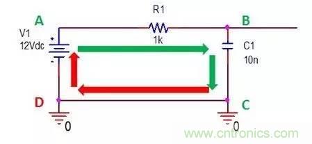 往往在設(shè)計(jì)階段A->B->C是都會(huì)關(guān)注的。如果EMC出現(xiàn)問(wèn)題,除了要在原理圖上查找電路參數(shù)的問(wèn)題,還需要特別關(guān)注C->D,即回流路徑。