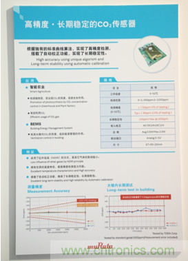 在傳感器方面,村田推出了剛剛在2017年9月份開始量產(chǎn)的高精度·長期穩(wěn)定的CO2傳感器。據(jù)了解,該產(chǎn)品根據(jù)村田獨(dú)有的標(biāo)準(zhǔn)曲線算法,實(shí)現(xiàn)了高精度檢測,并搭載了自動(dòng)校正功能,確保了長期穩(wěn)定性,可以應(yīng)用于智能農(nóng)業(yè)和BEMS(Building Energy Management System)。在植物園、農(nóng)業(yè)園里安裝了該產(chǎn)品后,可以精準(zhǔn)檢測出園內(nèi)CO2濃度,促進(jìn)光合作用,有效利用CO2。該產(chǎn)品安裝在大樓空調(diào)系統(tǒng)用通風(fēng)管后,能夠?qū)崟r(shí)檢測大樓內(nèi)CO2的濃度,只在必要時(shí)開啟新風(fēng)系統(tǒng)進(jìn)行換氣,從而對大樓整體節(jié)能做出貢獻(xiàn),起到能源管理的作用。