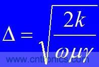 工程上定義從表面到電流密度下降到表面電流密度的0.368(即1/e)的厚度為趨膚深度或穿透深度Δ: