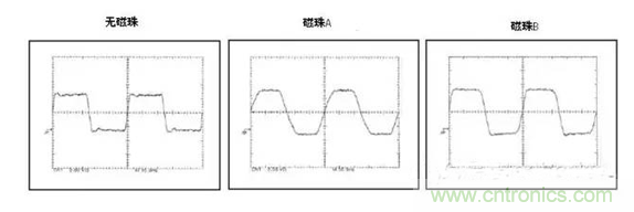 下面是用示波器分別量測(cè)磁珠輸出端的波形圖