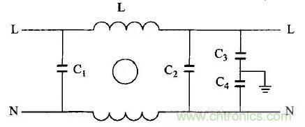 圖1:電源線濾波器基本電路圖