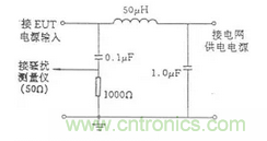 僅是EUT發(fā)射的,不會(huì)有電網(wǎng)的騷擾混入。另一作用是為測(cè)量提供一個(gè)穩(wěn)定的阻抗,因?yàn)殡娋W(wǎng)的阻抗是不確定的,阻抗不一樣EUT的騷擾電壓值也不相同,所以要規(guī)定一個(gè)統(tǒng)一的阻抗,通常為50Ω。AMN實(shí)際上是個(gè)雙向低通濾波器,電網(wǎng)中的騷擾由50μH和1.0μF的濾波器濾掉,不能進(jìn)人騷擾測(cè)量?jī)x,而EUT發(fā)射的騷擾由于50μH濾波器的阻擋不能進(jìn)人電網(wǎng),只能通過(guò)0.1μF電容進(jìn)入騷擾測(cè)量?jī)x。測(cè)量?jī)x的輸入阻抗是50Ω,所以EUT騷擾的負(fù)載阻抗約等于50Ω。對(duì)于50Hz的工頻電源,仍然可以通過(guò)AMN向EUT供電。圖15中的AMN僅是一種基本結(jié)構(gòu),由基本結(jié)構(gòu)可以組成V型AMN,用于測(cè)量電源中相線—地線和零線—地線的不對(duì)稱(chēng)騷擾電壓,見(jiàn)圖16。也可組成Δ型AMN,除了測(cè)量線-地間的不對(duì)稱(chēng)騷擾電壓外還可以測(cè)量相線—零線間的對(duì)稱(chēng)騷擾電壓,見(jiàn)圖17。測(cè)量時(shí)EUT和AMN的布置、連接線的長(zhǎng)度和走向等都應(yīng)按標(biāo)準(zhǔn)規(guī)定的要求進(jìn)行。AMN外殼要良好接地,否則將影響電網(wǎng)和EUT之間的隔離。圖18為臺(tái)式設(shè)備的傳導(dǎo)騷擾測(cè)量布置圖。