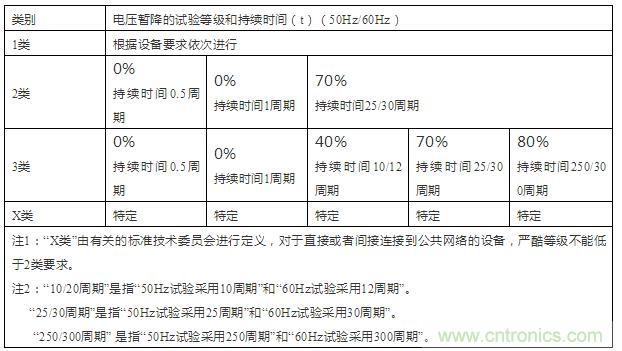 表1:電壓暫降試驗優(yōu)先采用的試驗等級和持續(xù)時間