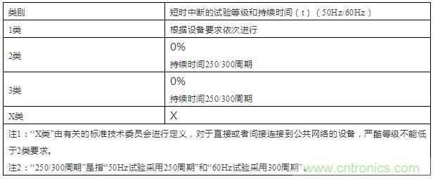 表2:短時中斷試驗優(yōu)先采用的試驗等級和持續(xù)時間