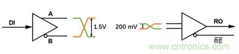 當RS-485芯片接受到差分電壓大于200mV時,RO腳輸出低電平,而本身DI可以輸出1.5V的差分電壓。因此有足夠的余量來支持長距離傳輸以及各種環(huán)境噪聲的干擾。