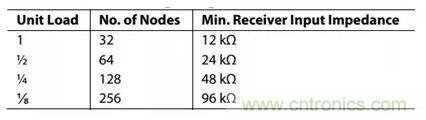 圖4:RS-485接收器的輸入阻抗和負載數(shù)量