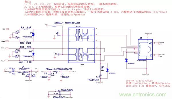 30、以太網(wǎng)EMC(浪涌)設計標準電路(差模要求較高方案)
