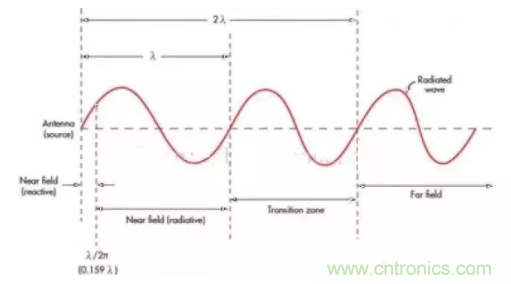 對近場似乎還沒有正式的定義,它取決于應(yīng)用本身和天線。通常,近場是指從天線開始到1個波長(λ)的距離。波長單位為米,公式如下: