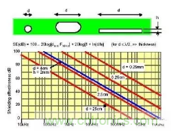 d、屏蔽體的電連續(xù)性是影響結(jié)構(gòu)件屏蔽效能最主要的因素,相對(duì)而言,一般材料本身屏蔽性能以及材料厚度的影響是微不足道的(低頻磁場(chǎng)例外);