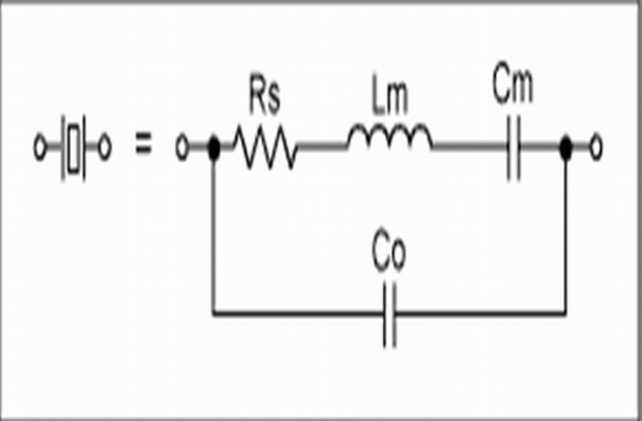晶體的等效電路見(jiàn)圖1。圖中包括了動(dòng)態(tài)元件:電阻Rs、電感Lm、電容Cm和并聯(lián)電容Co。這些動(dòng)態(tài)元件決定了晶體的串聯(lián)諧振頻率和諧振器的Q值。并聯(lián)電容Co是晶體電極、管殼和引腿作用的結(jié)果。