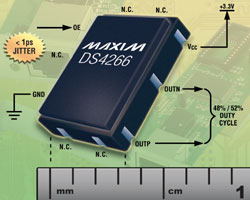 DS4266支持LVPECL和LVDS輸出。器件工作在-40°C至+85°C擴(kuò)展級溫度范圍,提供節(jié)省空間的5.0mm x 3.2mm x 1.49mm、10引腳LCCC表貼陶瓷封裝。芯片起價為$4.50 (10,000片起,美國離岸價)??商峁悠芬约铀僭O(shè)計進(jìn)程。