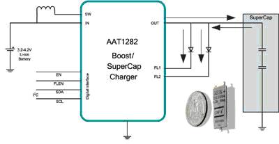 超級電容很少用在便攜式系統(tǒng)中。它們的應(yīng)用通常局限于備份或待機,這些功能使用相對較低電流,并需要相當長充電時間。通過整合最新推出的升壓轉(zhuǎn)換器和超級電容,設(shè)計師現(xiàn)在可以創(chuàng)建緊湊的解決方案。