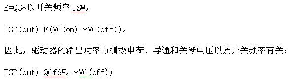驅(qū)動IGBT所需觸發(fā)電路的單獨功率可被視作是預(yù)期開關(guān)頻率和能量的函數(shù),該能量用于對IGBT進(jìn)行充放電。驅(qū)動器輸出功率PGD(out)等于電能E乘(VG(on)-?fSW)。E等于柵極電荷乘以導(dǎo)通和關(guān)斷電壓的差值,