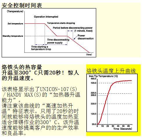 - 具備節(jié)能功能。當(dāng)一段時(shí)間不使用烙鐵時(shí)加熱器溫度會(huì)自動(dòng)降低至設(shè)定的作業(yè)準(zhǔn)備溫度。 ( 當(dāng)拿起烙鐵手柄時(shí)溫度會(huì)自動(dòng)上升恢復(fù)至設(shè)定的作業(yè)溫度 )
