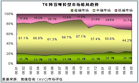 隨著彩電市場產(chǎn)品技術(shù)、功能的進(jìn)一步演化,以及不同地區(qū)、不同人群需求的多樣化,中國彩電市場向高端和低端二個市場分化趨勢更加明顯:趨優(yōu)市場,高端消費(fèi)群體更樂意花更多的錢買高品質(zhì)、高價值、多功能且充滿感情色彩的產(chǎn)品和服務(wù);趨低市場,低端消費(fèi)群體更在意能用相對低廉的價格購買可滿足針對性需求的高性價比產(chǎn)品和服務(wù),平板電視的啞鈴型市場格局也正逐步呈現(xiàn)出趨勢。