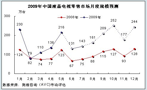 2009年LCD市場仍將呈現(xiàn)出中國市場特有的需求旺季分布顯著特征,預(yù)計2009四季度面板漲價和緊張供給局面將得到逐步緩解,加上各整機(jī)廠商2009年液晶年度銷售目標(biāo)的調(diào)整,行業(yè)上下游均對2009十一市場和元春市場寄予厚望。而十一市場和元春市場也將是2009年下半年的階段性制高點(diǎn),但由于受面板資源的影響,缺貨和提價可能導(dǎo)致高端大屏市場的競爭格局有所變化,同時LCD電視零售比重高速增長趨勢也可能被有所抑制。