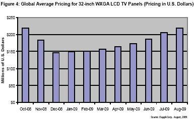 2008 年10 月至2009 年8 月32-inch WXGA LCD 面板的全球平均價(jià)格。