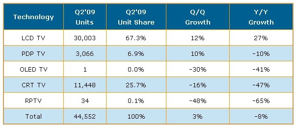 表一 Q2’09 全球按應(yīng)用技術(shù)別電視出貨量與成長(zhǎng)率(單位:千臺(tái))