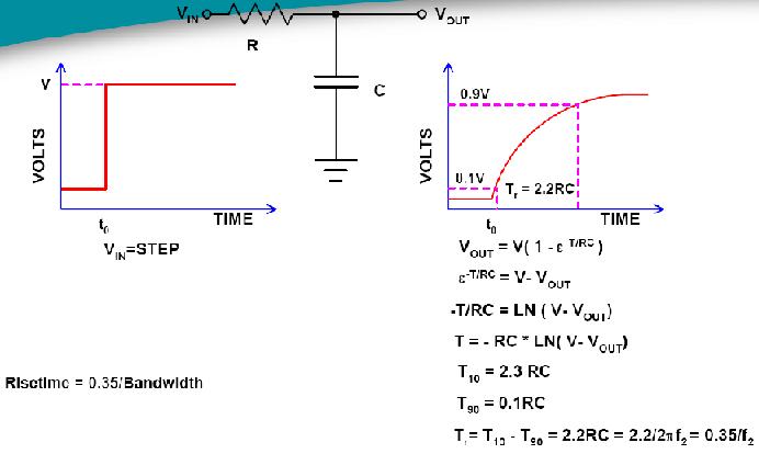 圖6,示波器上升時(shí)間和帶寬的關(guān)系