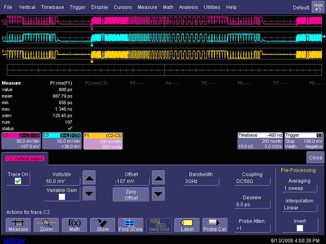 圖16,1GHz帶寬時(shí)測試USB2.0 high speed信號的上升時(shí)間