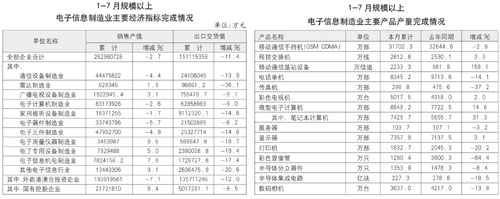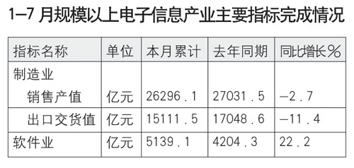 1-7月規(guī)模以上電子信息產(chǎn)業(yè)主要指標概覽