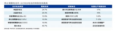 從成本來看,中投證券認(rèn)為,盡管晶體硅價格暴跌,CIGS仍具成本優(yōu)勢。首先,由于CIGS電池尚未達(dá)到量產(chǎn),通過成本細(xì)拆,參照工藝類似的第一太陽能的成本構(gòu)成(主要是設(shè)備折舊、玻璃、材料和人工等四項),在規(guī)?;?yīng)下,CIGS薄膜電池的成本約為1.07美元/瓦,已遠(yuǎn)低于目前的晶體硅電池成本。其次,CIGS電池采用相對廉價的玻璃為襯底,這樣所需的稀有元素耗損量大為減少;另外,CIGS電池的弱光效應(yīng)較好,對光照的要求降低,運行時間遠(yuǎn)高于晶體硅電池。