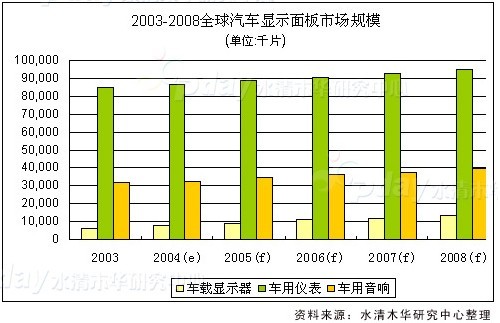 汽車信息系統(tǒng)的復雜性和信息密度在日益上升,這使得汽車內(nèi)部顯示器不再僅僅是基本的集中儀表顯示,而是要滿足越來越詳細和多樣化的車內(nèi)信息顯示需求。車載顯示器市場按應用分為車載導航裝置、車載電視,以及車載信息系統(tǒng);按裝配時間分為原裝和后裝兩個市場。原裝市場需要經(jīng)過嚴格的認證,進入較難;后配市場則不需認證,是目前最大的市場,約是原裝市場的20倍。未來隨著汽車導航系統(tǒng)等成為汽車標配,新車配備顯示器的比例即原裝市場的比例會逐步提升。