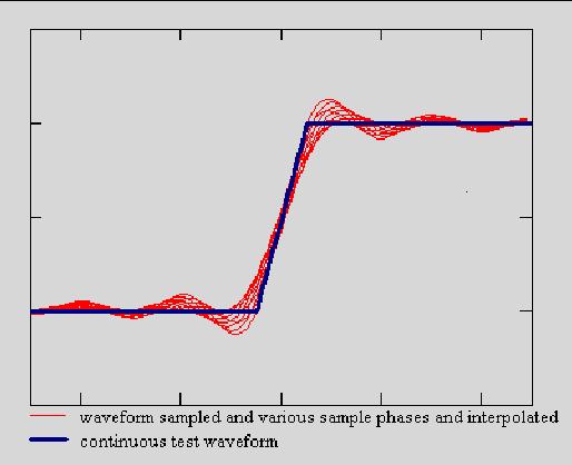 在純數(shù)學(xué)運(yùn)算中,這兩種內(nèi)插方法都是無效的。例如,線性內(nèi)插要求使用直線把波形樣點(diǎn)聯(lián)結(jié)起來,僅僅帶寬限制一項(xiàng),就使這在技術(shù)上是不可能的。如前所述,SinX內(nèi)插只在滿足內(nèi)奎斯特標(biāo)準(zhǔn)時才有效,不僅如此,波形還需要無限長。