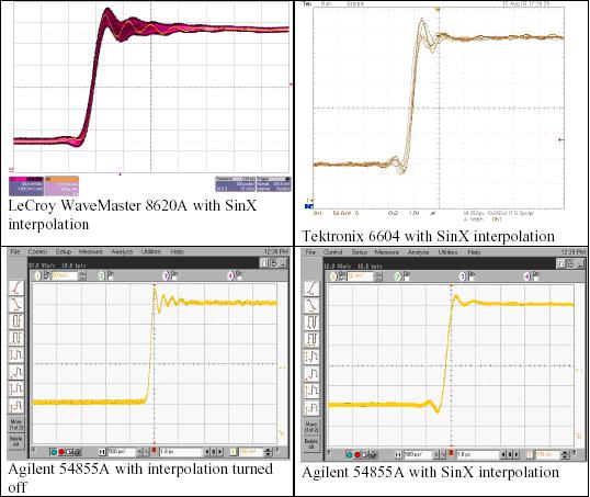 所有示波器在使用SinX內(nèi)插時都展現(xiàn)很緊的余輝曲線,與沒有內(nèi)插時生成的余輝曲線匹配。由于31 ps邊沿提供了示波器看到的任何邊沿中最大的頻率成分,這一結(jié)果表明對所有示波器,SinX內(nèi)插在20 GS/s的最大采樣率時最有效,而不管應(yīng)用的信號如何。