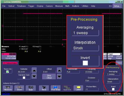 所有力科DSO都提供了SinX內(nèi)插模式。在力科全系列X-Stream DSO上,可以通過通道設(shè)置菜單控制內(nèi)插,每條通道支持不同的內(nèi)插選擇。在以前的力科示波器型號上,則通過演算曲線提供SinX內(nèi)插。