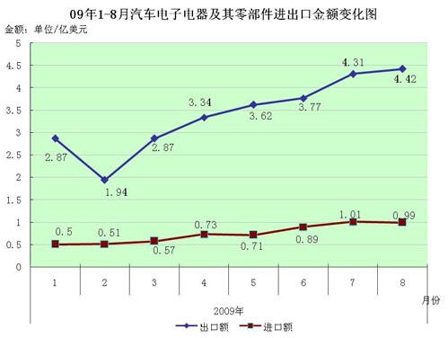 一、 2009年1-8月份國內(nèi)汽車電子電器產(chǎn)品出口量一路上揚(yáng)