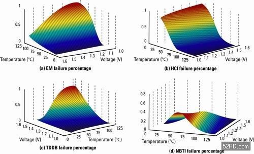 可用信息能夠估算出故障概率,卻無法提供實際故障數(shù)據,這是實施可靠性工程的一大挑戰(zhàn)。一般來說,用上幾千小時去測試一個裝置的做法是不切實際的,所以我們通常無法得到一個元件或系統(tǒng)在實際壽命中的測試數(shù)據。新產品的可靠性數(shù)據往往等于零,然而這并不代表有關產品永遠不會出現(xiàn)故障。雖然以更高溫度加快壽命測試或許能提供恰如其分的實驗數(shù)據,不過該實驗前提包括了活化能量恒久不變的假設,而在實際情況下,它是電壓和溫度的一個函數(shù)(圖1)。這限制了加快的壽命測試在預測可靠性方面的準確度。因此,現(xiàn)場故障的監(jiān)察及反饋對提高產品可靠性的預測能力十分重要。