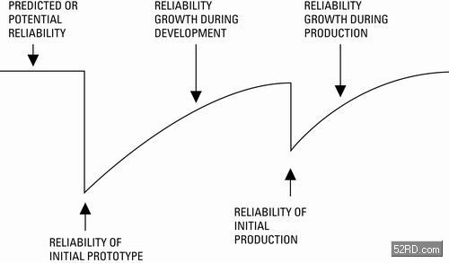 如圖4所示,每個產品壽命周期都包含不同階段的轉變,由原型到開發(fā),再由開發(fā)到生產,過程中的可靠性會不斷增長。換句話說,每項設計在其壽命周期中,可靠性都會增加,而成本則會下降。這反映了可靠性的增長不單是設計工程師的責任而已。