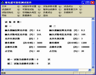 一是實(shí)時(shí)檢測(cè)與處理程序,包括了試驗(yàn)參數(shù)的設(shè)置,對(duì)試驗(yàn)狀態(tài)以及失效數(shù)據(jù)的保存,對(duì)失效數(shù)據(jù)進(jìn)行數(shù)學(xué)分析,打印報(bào)表等,檢測(cè)裝置記錄的失效數(shù)據(jù)有失效時(shí)間,失效試品號(hào)、觸點(diǎn)號(hào),觸點(diǎn)失效的類型,失效時(shí)觸點(diǎn)電壓以及各觸點(diǎn)累計(jì)失效次數(shù)等;