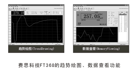 費思FT368 標配FaithtechView測試包軟件(5種功能:趨勢繪圖,數據記錄分析,邏輯分析,單通道示波,諧波分析);對于福祿克287,FlukeView測試軟件包是選配(2種功能:趨勢繪圖,數據記錄分析),選配價格2300元,這個價格有點離譜。