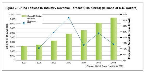 隨著全球經(jīng)濟(jì)下滑,2009 年是中國無晶圓廠企業(yè)憑借低成本和創(chuàng)新產(chǎn)品進(jìn)入市場的良機(jī)。在2010 年及以后,這些公司必須利用這種優(yōu)勢從全球性競爭對手中贏取份額。