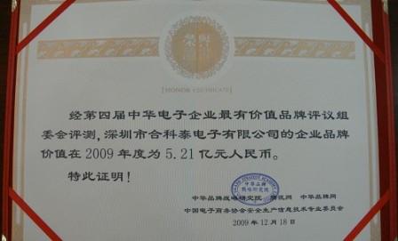 - 合科泰獲得“中華電子企業(yè)最有價(jià)值品牌”獎(jiǎng)